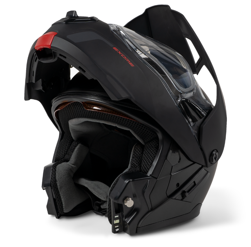 A step up from the Exome Sport Helmet, the Exome Sport Radiant Helmet is engineered with next-level technology to make sure your line of sight remains clear no matter what. This DOT-certified heated snowmobile helmet features a dual-lens Radiant electric-heated visor and a removable Breath Evac mask system, offering you a clear and comfortable fog-free riding experience, every time. Its modular design and advanced plastic composite shell delivers superior safety, while the removable aerodynamic peak adds versatility, so you can maximize every minute on the trails.